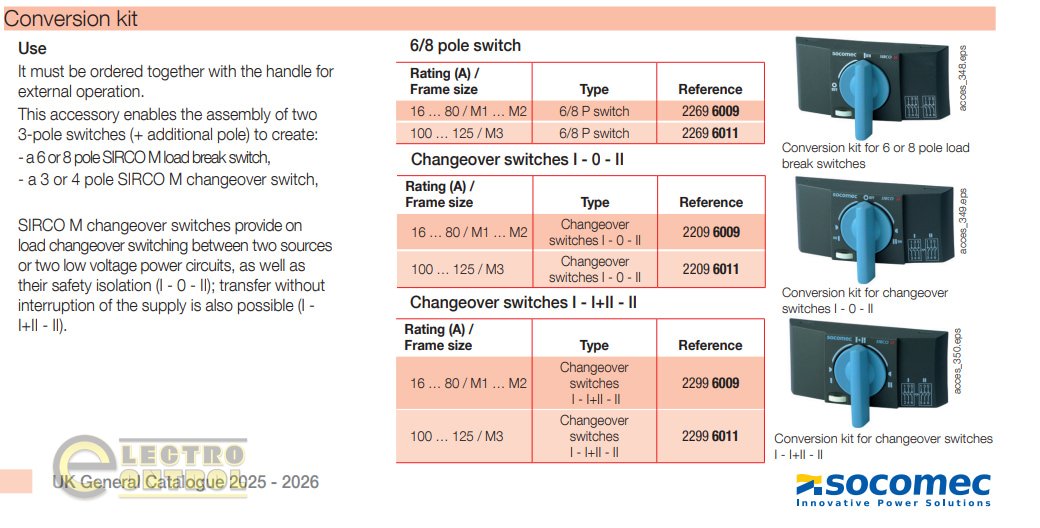 Комплект для сборки реверсивного переключателя (I-0-II) на базе двух 3-полюсных аппаратов Sirco M. Подходит для токов 100–125 А (габарит M3).