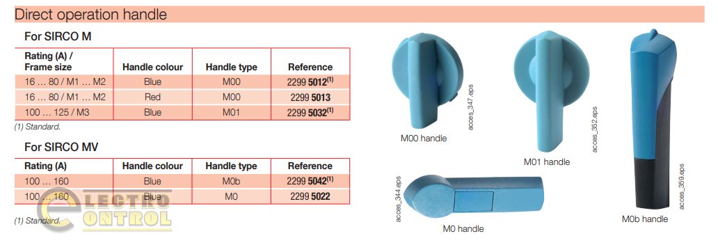 Компактная синяя рукоятка типа MO для прямого управления. Устанавливается непосредственно на механизм выключателей нагрузки Sirco MV номиналом 100–160 А