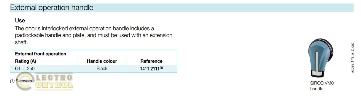 Ручка выносного управления Socomec 14112111 Sirco VM1/COMO IP55 фронтальная