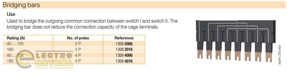 Комплект из 3-х шинных перемычек для создания общей точки выхода нагрузки. Предназначен для трехполюсных модульных переключателей ATyS номиналом 160 А
