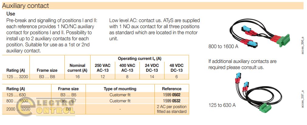 Дополнительный контакт 1NO+1NC для переключателей ATyS t и ATyS g, номинальный ток 800-1600А.