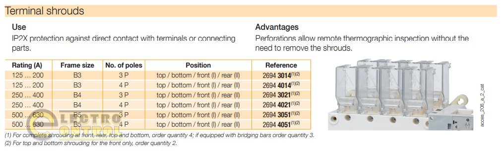Клеммные крышки (экраны) для 4-полюсных (4P) переключателей ATyS r, g, p, номинальный ток 250-400А, габарит B4.