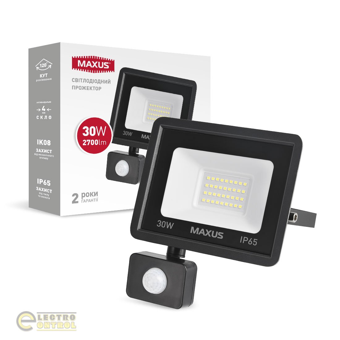 Светодиодный прожектор с датчиком движения MAXUS 1-MFL-04-3050s FL-04 30W 5000K sensor