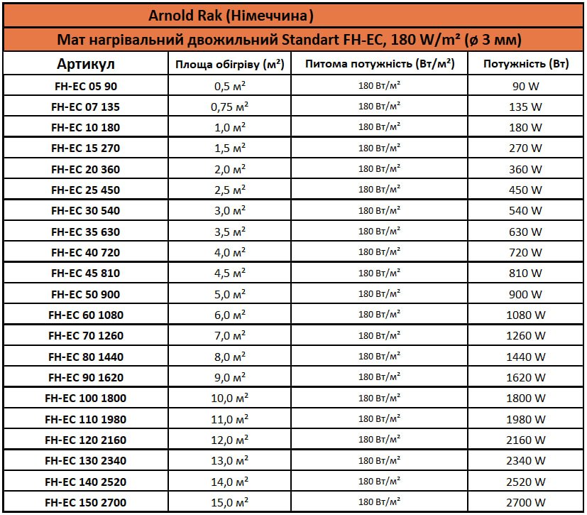 Нагревательные маты Arnold Rak Standart FH-EC, 180 W/m² (Германия)