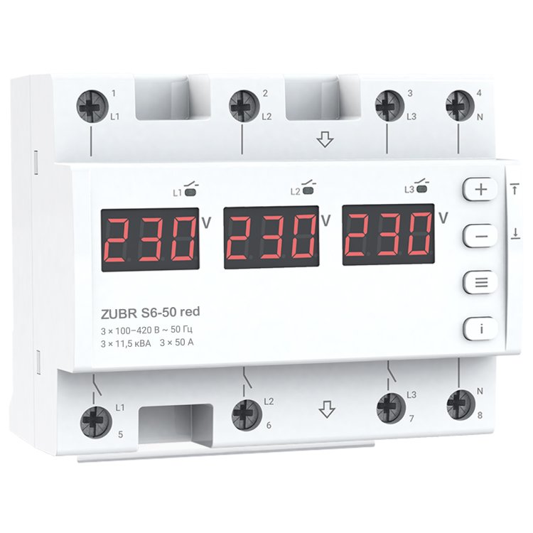 Устройство позволяет настроить приоритет фаз вручную, выбрав любую последовательность (123, 132, 213, 231, 312, 321). В автоматическом режиме ZUBR S6 самостоятельно определяет наиболее стабильную фазу и переключает нагрузку при аварийной ситуации.