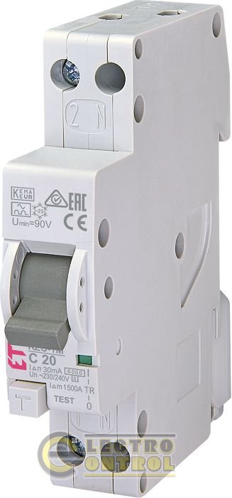 Дифференциальный автоматический выключатель KZS-1M C 20/0,03 тип A (6kA) (нижнее подключение) 2175225