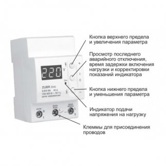 На сайте интернет магазина eschop (Электроконтроль) Вам представлено реле напряжения D40 отечественного производителя ZUBR. Предназначение реле данной модели: защищать электрические приборы от разного рода отклонений напряжений в электрической сети от нормы. Производители техники в основном ориентированы на напряжение сети 220В, что соответствует государственному стандарту. Но в реальности могут происходить сильные отклонения в сети (от 160В до 380В), что влечет за собой выход из строя бытового оборудования. Факторы влияющие на скачки напряжения: