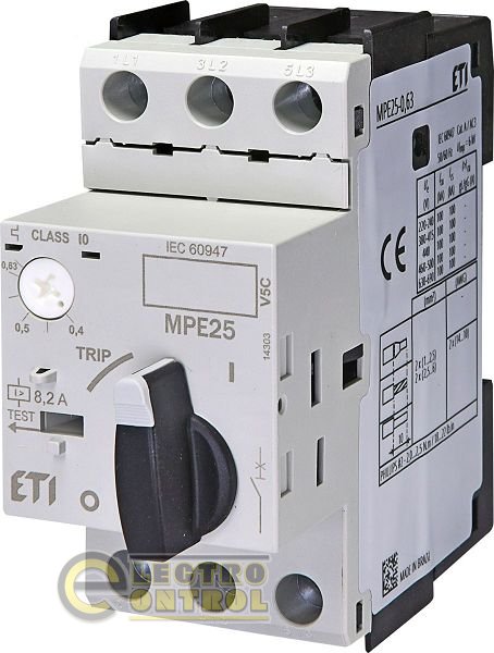 Автоматический выключатель защиты двигателя MPE25-0,63 предназначены для пуска электродвигателей небольшой мощности и защиты их от перегрузок и коротких замыканий. Могут применяться как аварийный или главный выключатель. В комплекте с контакторами СЕ, или СЕМ можно реализовать системы дистанционного управления.