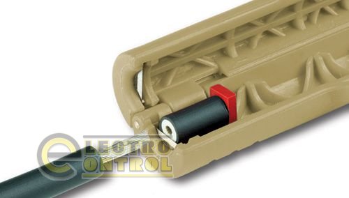 Инструмент 30200-J быстро, точно и качественно зачищает все известные силовые кабеля и кабеля высокой безопасности сечением 10 мм2 - 16 мм2. К ним относятся : безгалогенные кабеля, огнестойкие кабеля, кабеля солнечных батарей, при коротком замыкании и заземлении кабеля с защитой NSGAFÖU, VER H07RN-F. Устанавливать глубину резки нет надобности, из-за уникальной формы лезвия и его способности подстраиваться к любому размеру кабеля. Благодаря новому уникальному эргономичному дизайну и оптимальному расположению лезвий исключены любые повреждения внутренних жил кабеля. Из-за компактной конструкции инструмента, легко можно добраться в труднодоступные , узкие места и с высокой точностью осуществить необходимые манипуляции. На корпус нанесена шкала, дающая возможность правильно замерять требуемую длину для снятия изоляционной оболочки 5 мм – 20 мм. Диапазон разметки продольной подачи 8 мм-10 мм-12 мм.
