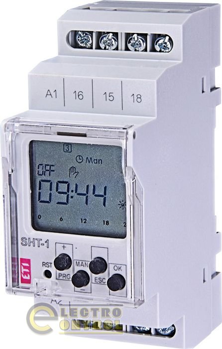 На сайте ecshop (Электроконтроль) Вы можете ознакомиться и купить программируемое цифровое реле SHT-1 230V AC (1x16A_AC1) 2470050 ETI. Программируемые цифровые таймеры SHT-1 предназначено для дистанционного управления освещением и различными устройствами, с привязкой к реальному времени.