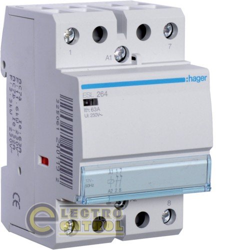 Подробное описание товара - модульного контактора Hager ESL264 63А 12В 2НЗ