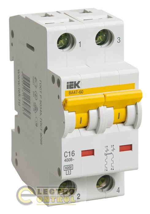 Автоматический выключатель UEK (IEK) ВА47-60 MVA41-2-006-C 2p C 6А 6 кА AC