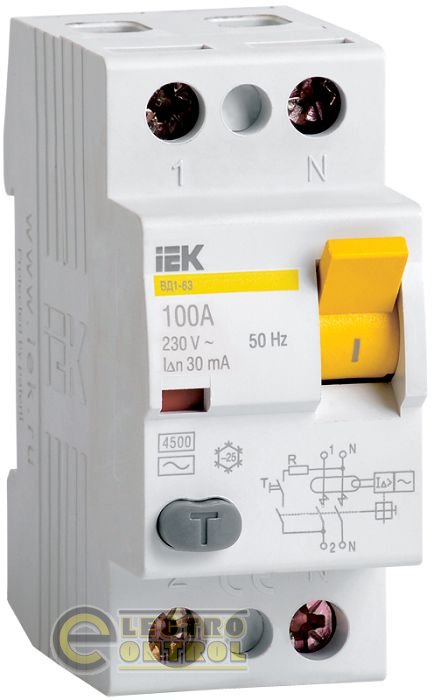 Устройство защитного отключения ВД1-63S 2Р 63А 100мА MDV12-2-063-100 IEK компании "IEK" реагирующее на дифференциальный ток, не обладающее встроенной защитой от сверхтоков, предназначено для безопасности от прямого поражения электрической энергией человек. Также, УЗО предотвращает возможность аварийной ситуации и утечки тока на землю. Высокая механическая износостойкость и качество продукции выгодно отличают УЗО фирмы "IEK" от других производителей..