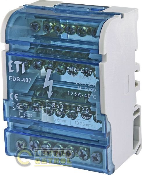 Распределительные блоки EDB используются в качестве соединительных элементов: проводников нейтрали "N",заземляющих проводников "PE", отходящих линий.