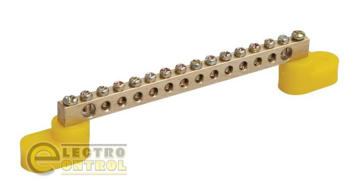 - Шина PE "земля" на двух угловых изоляторах ШНИ-6х9-14-У2-Ж-