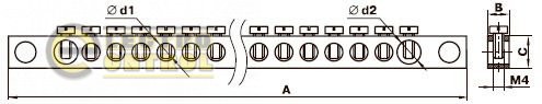 - Шина PEN "земля-ноль" 6х9мм 22/2 22групп/крепление по краям-