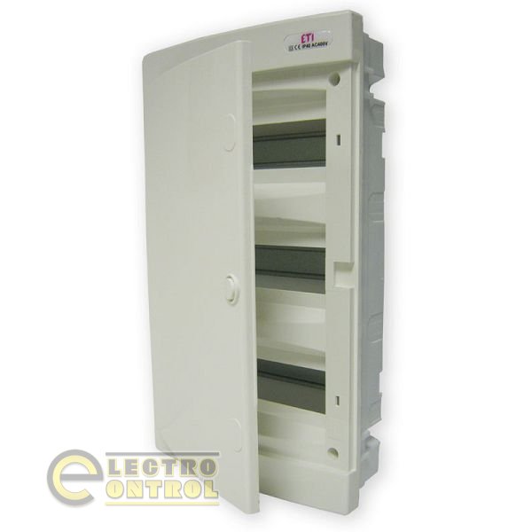 На данной странице интернет-магазина eschop (Электроконтроль), Вы можете ознакомиться и купить щит внутренний распределительный ECT 3x18PO (54 модуля, белая дверь) 1101048 ETI. Такие пластиковые щиты внутреннего и внешнего исполнения устанавливаются в жилищном и производственном строительстве для установки защитных, сигнальных и распределительных модульных устройств, обеспечивая IP40 уровнем защиты.