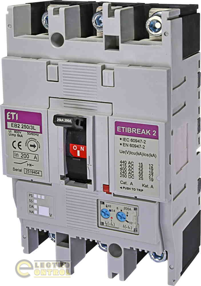На сайте интернет – магазина ecshop (Электроконтроль) , Вы можете ознакомиться и купить автоматический выключатель EB2 250/3L 200А 3р (25кА) 4671072 ETI.