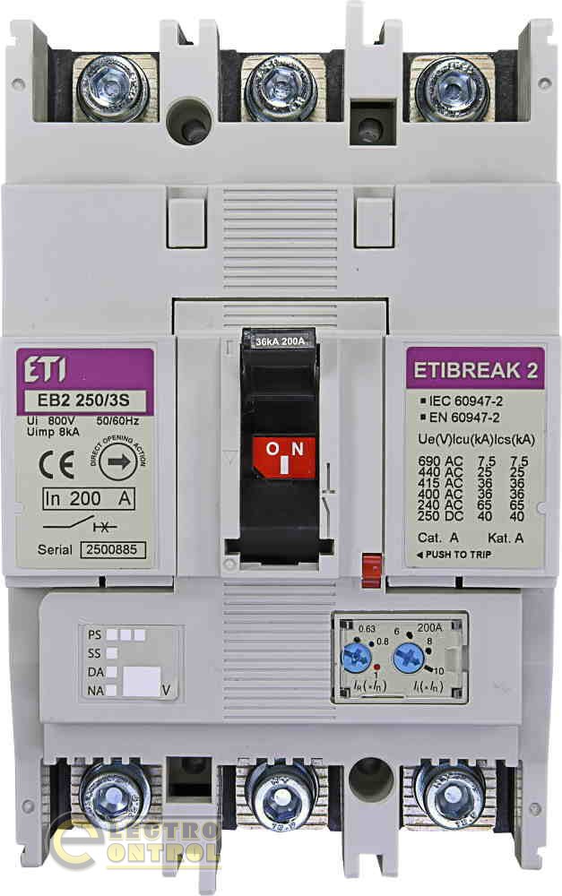 На сайте интернет – магазина ecshop (Электроконтроль) , Вы можете ознакомиться и купить автоматический выключатель EB2 250/3S 200А 3р (36кА) 4671082 ETI.