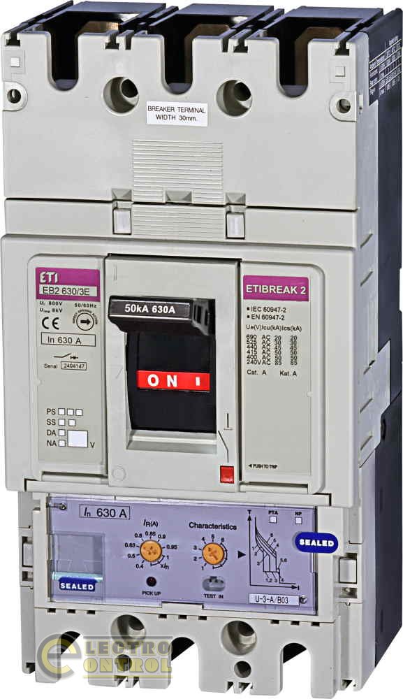 На сайте интернет – магазина ecshop (Электроконтроль) , Вы можете ознакомиться и купить автоматический выключатель EB2 630/3E 630А 3р (50кА) 4671127 ETI.