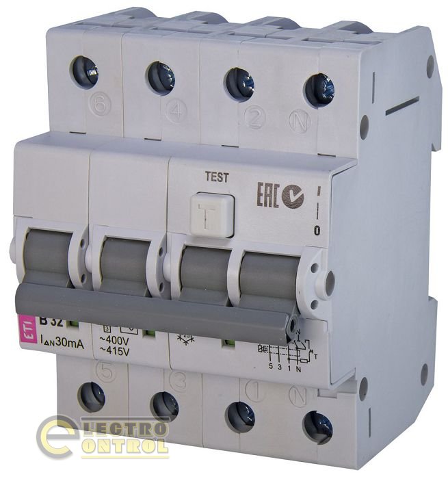 На сайте ecshop (Электроконтроль) Вы можете ознакомиться и купить дифференциальный автоматический выключатель KZS-4M 3p+N B 32/0,03 тип AC (6kA) 2174007 ETI.