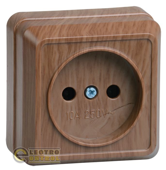 Розетка одноместная без заземленного контакта 10А открытой установки РС20-2-ОД ОКТАВА (дуб)