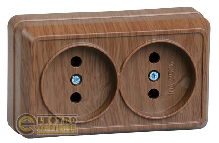 - Розетка двухместная без заземленного контакта 10А открытой установки РС22-2-ОД ОКТАВА (дуб)-