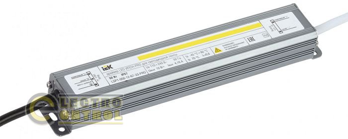 - Драйвер LED ИПСН-PRO 50Вт 12 В блок- шнуры IP67 УЕК-