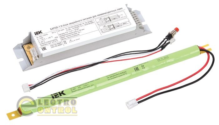 Блок аварийного питания IEK состоит из: электронного пускорегулирующего аппарата (конвертера), герметичной никель-металл-гидридной аккумуляторной батареи, светодиодного индикатора наличия сети и подзарядки аккумулятора, кнопки "ТЕСТ".0