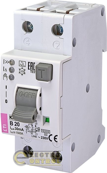 - Серия KZS-2M2p EDI Residual current circuit breakers with overcurrent protection,2 modules, A type