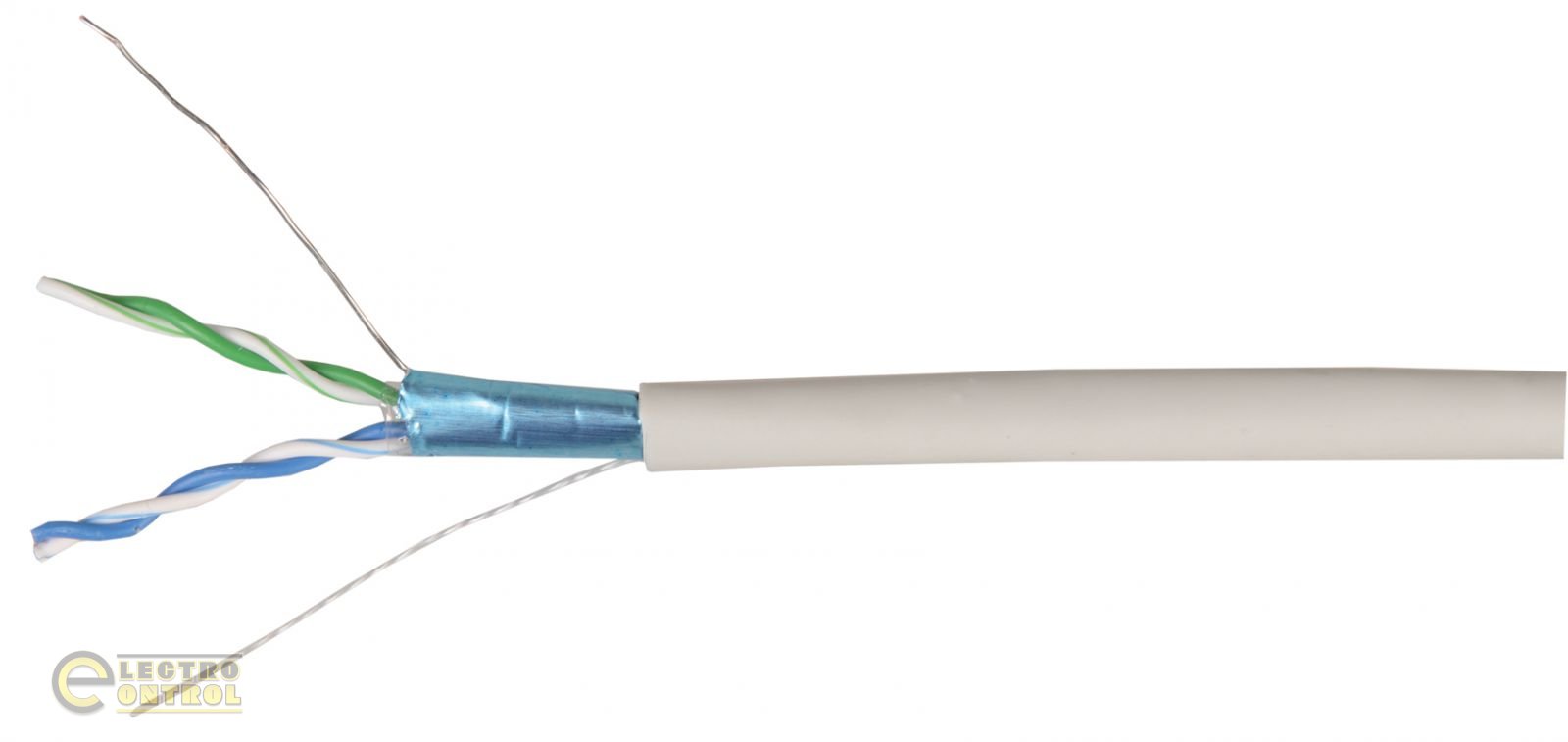 Кабель связи витая пара F/UTP, кат.5E 2х2х24AWG solid, PVC, 500м, серый