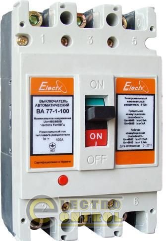 Автоматический выключатель серии ВА 77-1 механический коммутационный аппарат, специально спроектированный для защиты электрических сетей, от сверхтоков (токов, возникающих при коротком замыкании или перегрузке), а также для оперативного включения и отключения участков электрических цепей переменного тока частотой 50 Гц.