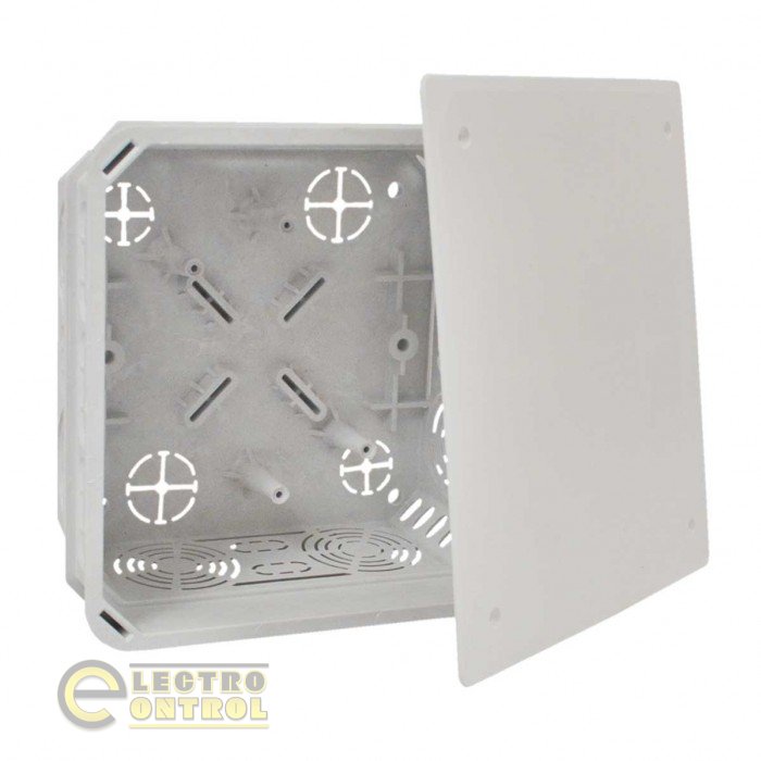 Коробка выполняет защиту от попадания воздуха, пыли, влаги IP20. Возможно большое количество вводов для установки кабелей и труб. Можно установить несущую рейку TS 35. Пазы в углах коробки дают возможность выровнить крышку. Для облегчения манипуляций с проводами можно удалить всю боковую стену коробки.
