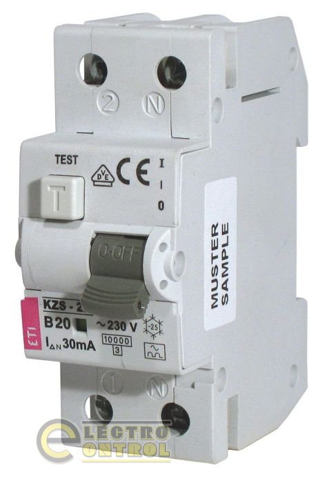 - Группа KZS-2M Дифференциальный автоматический выключатель, 2 модуля, тип A и AC