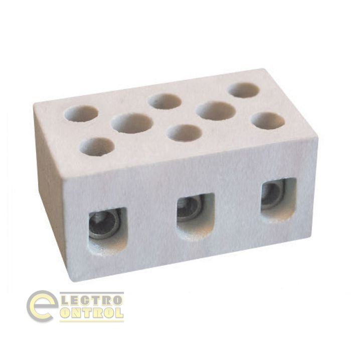 Термостійка керамічна клемна колодка, 34х19х25 мм, 3 полюса, 6А