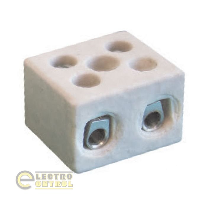 Термостійка керамічна клемна колодка, 24х21х26 мм, 2 полюса, 20А