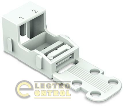 Монтажный держатель 221-512 для клеммных колодок 2х, серии 221, с защелкой крепления для горизонтального монтажа, цвет - белый.