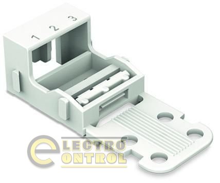 Монтажный держатель 221-503 для клеммных колодок 3х, серии 221, с защелкой крепления для винтового монтажа.