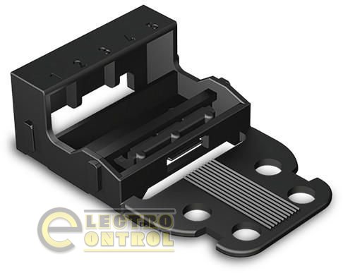 Монтажный держатель 221-505/000-004 для клеммных колодок 5х, серии 221, с защелкой крепления для винтового монтажа, цвет - чёрный.