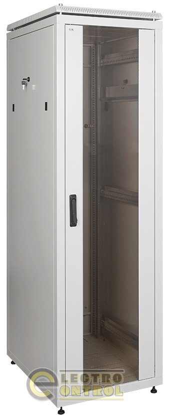 Шафа мережна 19" LINEA N, 18U, 600х800 мм, скляні передні двері, сірий