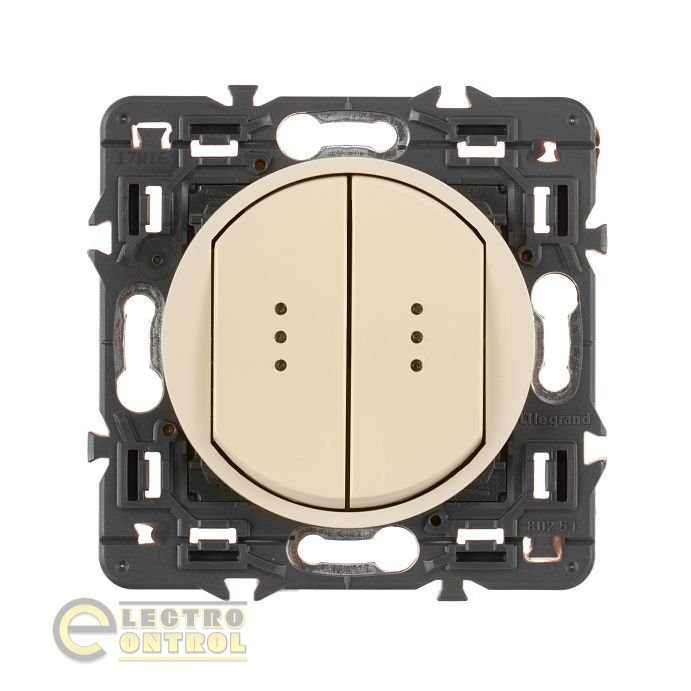Лицьова панель Legrand 66211 Celiane вимикач/перемикач двоклавішний з підсвічуванням Слонова кістка