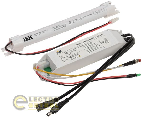 Блок аварійного живлення IEK складається з електронного пускорегулюючого апарата (конвертера), герметичної нікель-кадмієвої акумуляторної батареї, світлодіодного індикатору наявності мережі й підзарядки акумулятора із кнопкою "ТЕСТ".