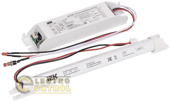 Блок аварійного живлення IEK складається з електронного пускорегулюючого апарата (конвертера), герметичної нікель-кадмієвої акумуляторної батареї, світлодіодного індикатору наявності мережі й підзарядки акумулятора із кнопкою "ТЕСТ".