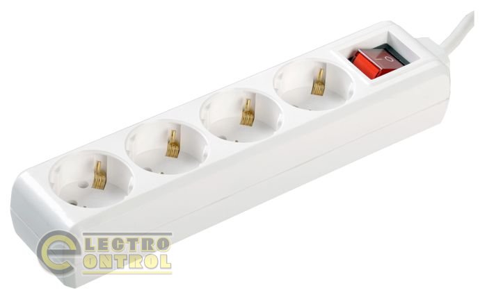 Подовжувач В04 До-Вимк. 4 місця 2Р+PЕ/1,5 метра 3х1мм2 16А/250, IEK WYP10-16-04-01-ZK-17. Гнучкий ПВС кабель із подвійною ізоляцією постачений нерозбірною вилкою із протизламним елементом. Жили кабелю мідні, багатодротові, що забезпечує підвищену гнучкість. Вимикач зі світловою індикацією втоплений у корпус розеточного блоку, що виключає випадкове вимикання приладу.
