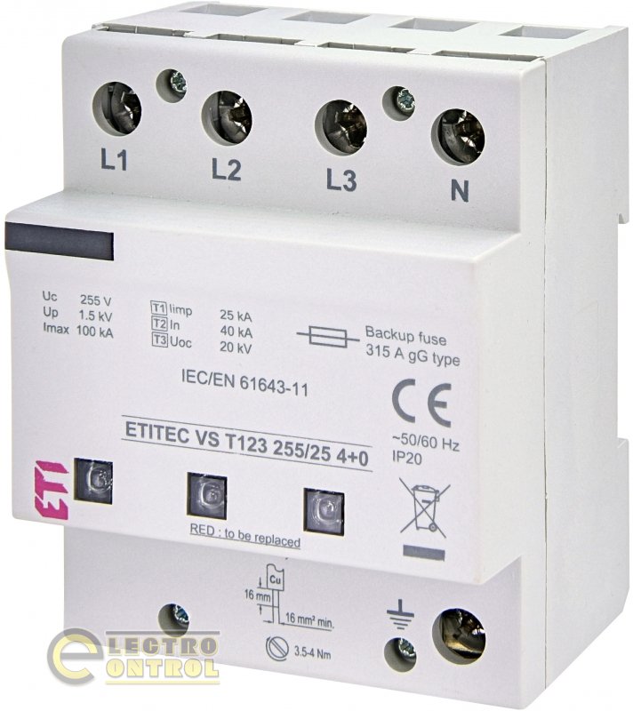 Обмежник перенапруги ETITEC VS T123 255/25 (4+0) 2442938