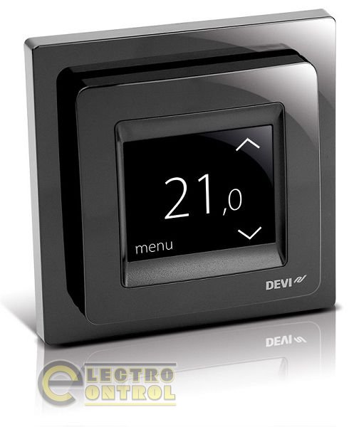 Devire Touch многофункциональный программируемый электронный терморегулятор с интеллектуальным таймером и сенсорным дисплеем. Возможность установки в рамки разных производителей. Оснащен встроенным датчиком температуры воздуха и в комплекте с датчиком температуры на проводе. Совместим с датчиками температуры других производителей.