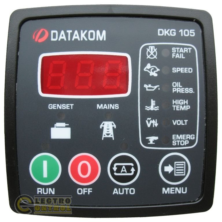 Полнофункциональное AMF устройство DATAKOM DKG-105 предназначено для управления дизельными и бензиновыми двигателями электрогенераторов, слежение за состоянием сети, запуск и останов двигателя, переключение нагрузки.