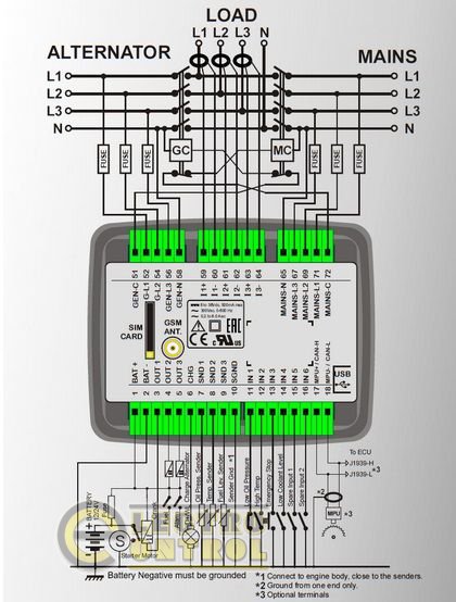 DATAKOM D-200 - недорогой контроллер нового поколения предназначеный для управления генераторной установкой, имеющий функционал мониторинга и управления через сеть Интернет.