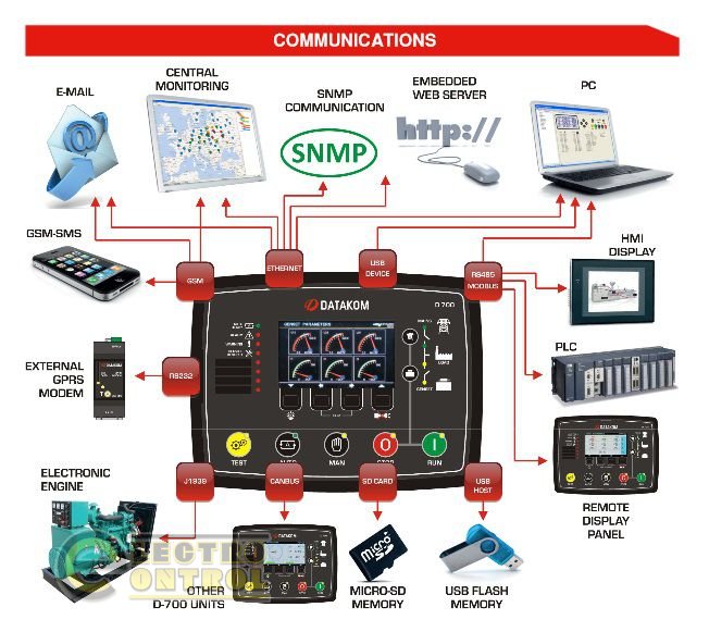 DATAKOM D-700 является многофункциональным контроллером нового поколения предназначенным для управления электрогенераторами и их синхронизации. Он сочетает в себе широкий спектр коммуникационных возможностей, надежность и доступную цену наряду с инновационным решением по автоматической адаптации к параметрам генераторных установок.