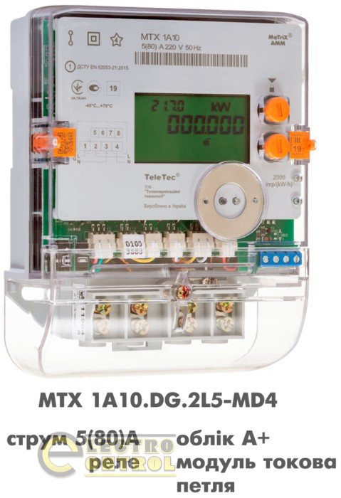 Лічильник електроенергій однофазний TeleTec MTX 1A10.DG.2L5-MD4